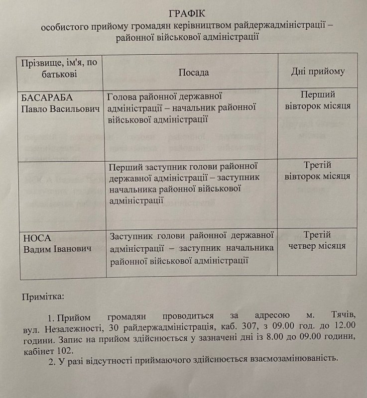 ГРАФІК особистого прийому громадян керівництвом районної державної...