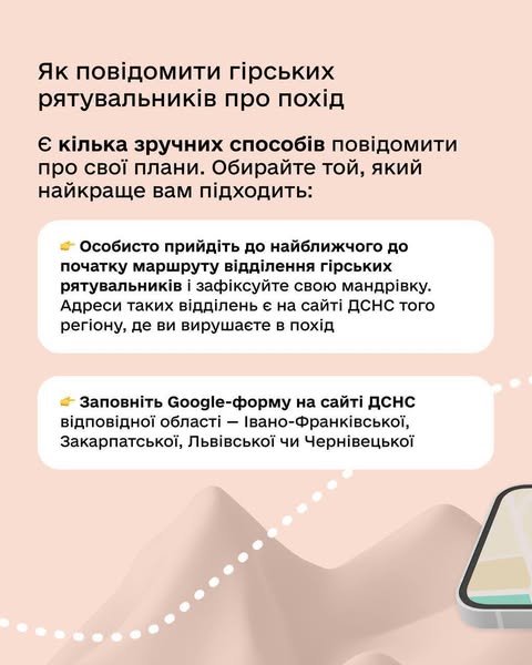 Вирушаєте в гори? Перед мандрівкою варто не лише ретельно спланувати маршрут і зібрати необхідне спорядження. Важливо обов’язково повідомити про свої плани ще кількох людей, які не беруть участь у поході.