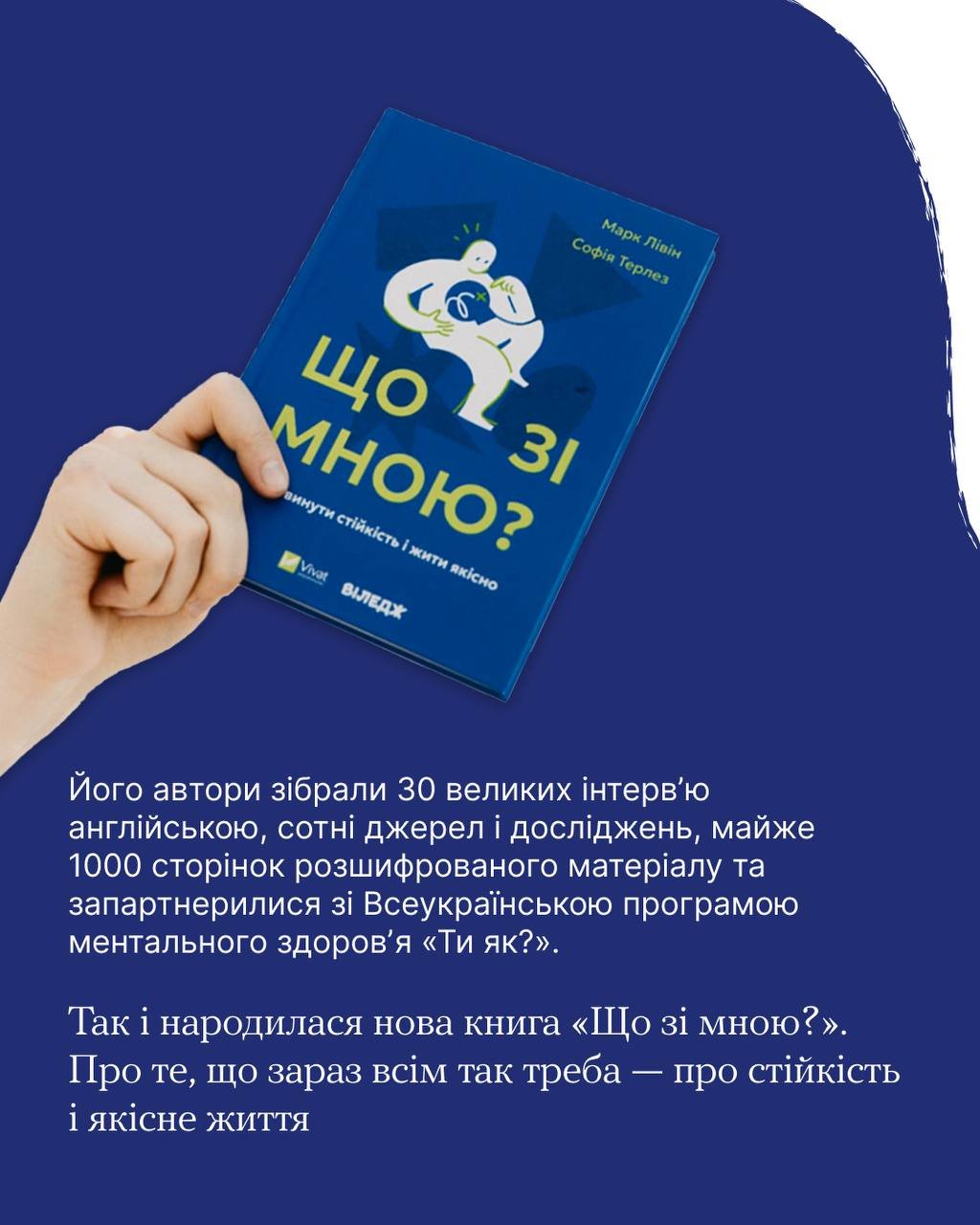 У бібліотеці «Ти як?» поповнення. Журналіст Марк Лівін та психотерапевтка Софія Терлез написали книгу про нашу стійкість. Видання створено на основі подкастів «Простими словами» разом із Всеукраїнською програмою ментального здоровʼя «Ти як?» за ініціативою Олена Зеленська. Вийшло натхненно і зовсім не нудно — з цікавими розмовами, дослідженнями, прикладами.