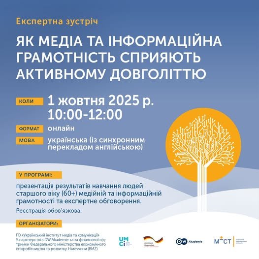 1 жовтня, в Міжнародний день людей похилого віку, Український інститут медіа та комунікації презентує результати експериментального навчання для людей старшого віку (60+) та проведе експертне обговорення.