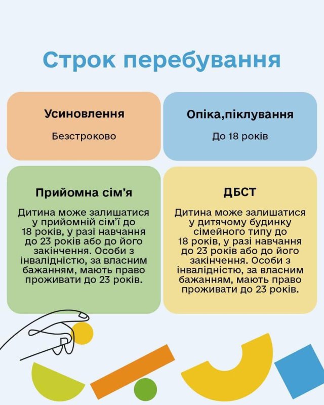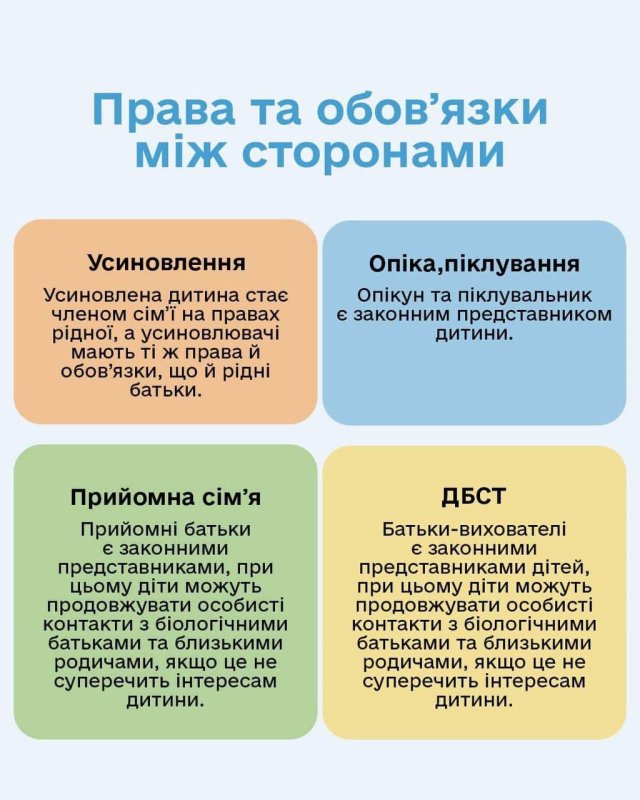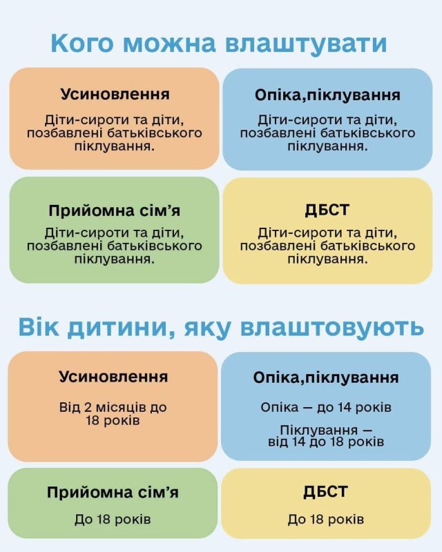 Інфографіка Державної служби України у справах дітей допоможе розібратися в особливостях кожної з них, а також — дізнатись, чим відрізняється усиновлення від сімейних форм виховання.