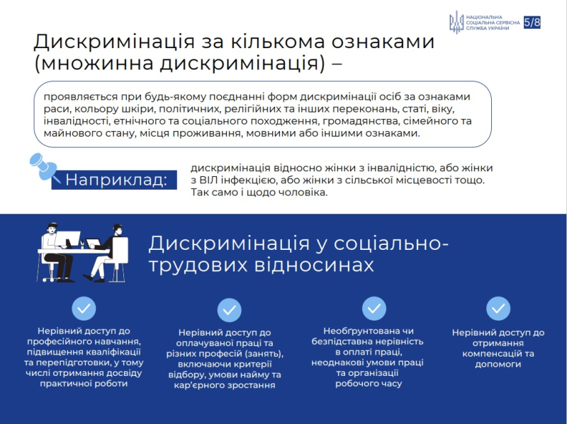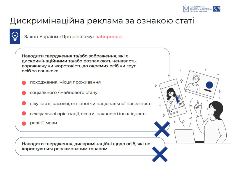 Національна соціальна сервісна служба України інформує щодо запобігання випадків дискримінації за ознакою статі.