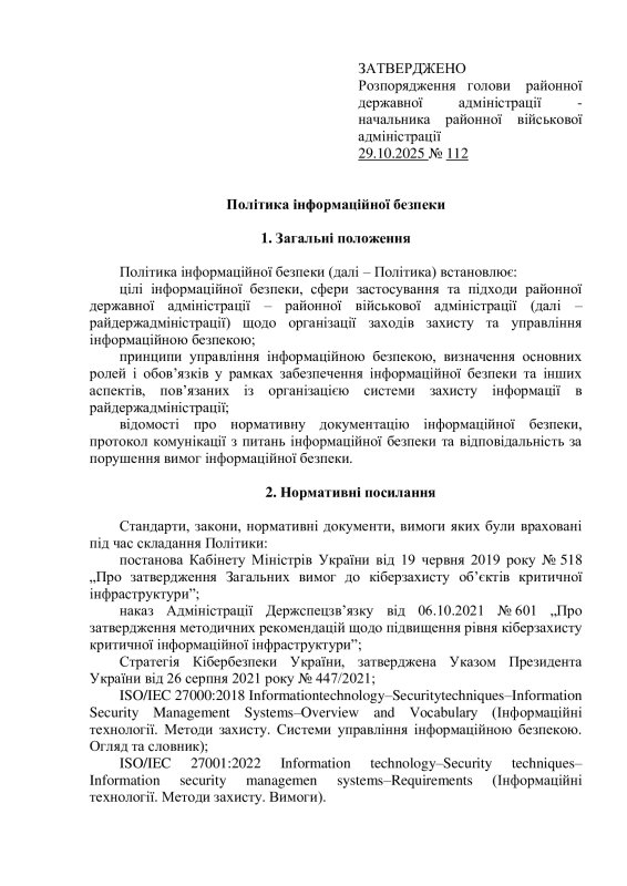 Про затвердження Політики з інформаційної безпеки в Тячівській районній державній адміністрації - районній військовій адміністрації