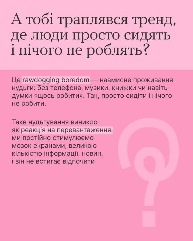 Поки згадуєш, гортай карусель — у ній розповідаємо про тренд, який змусить тебе нудьгувати навмисно.