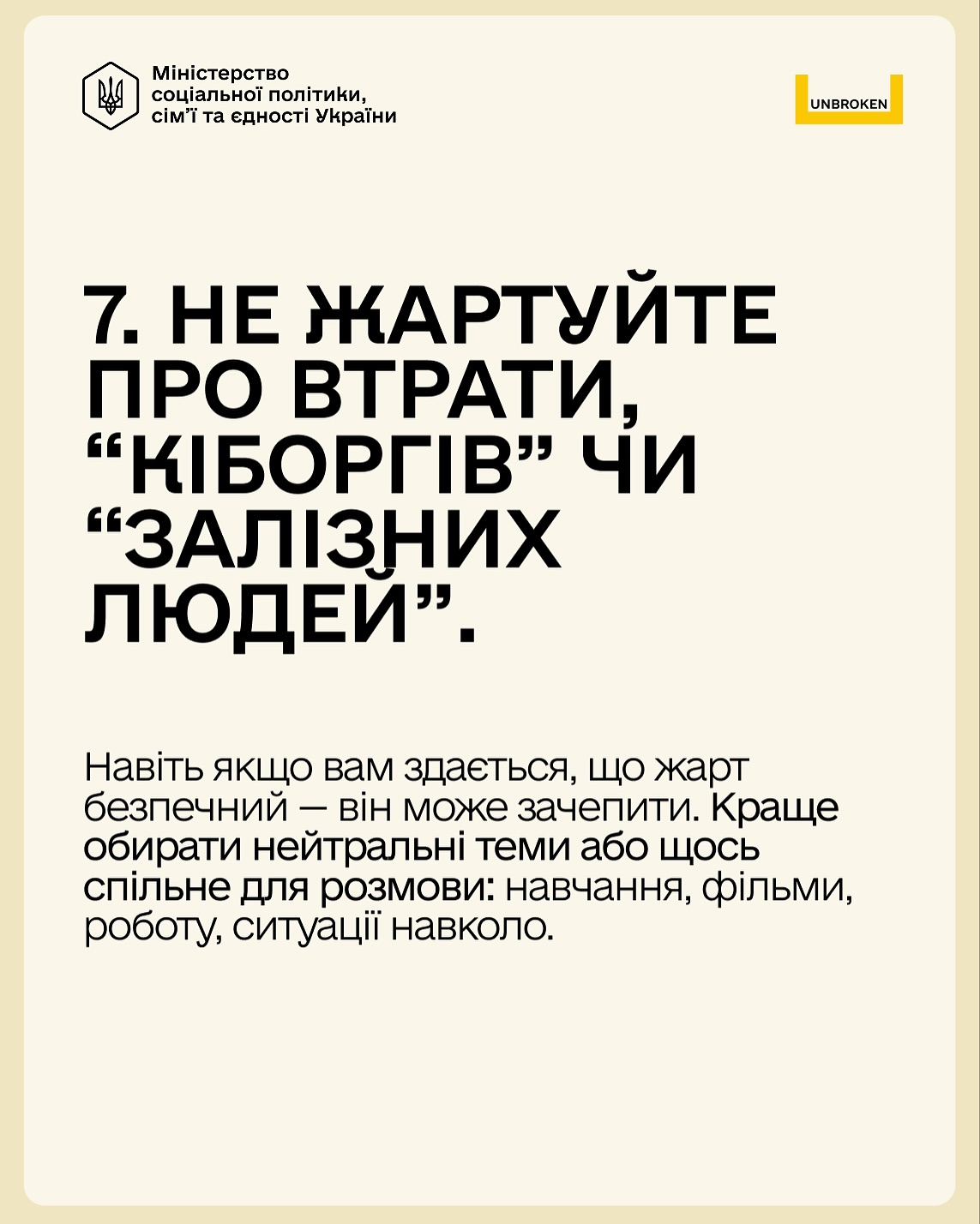 Детальніше про це розповідаємо разом з UNBROKEN Ukraine — у картках.