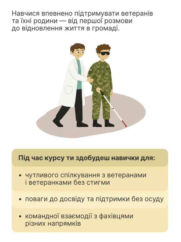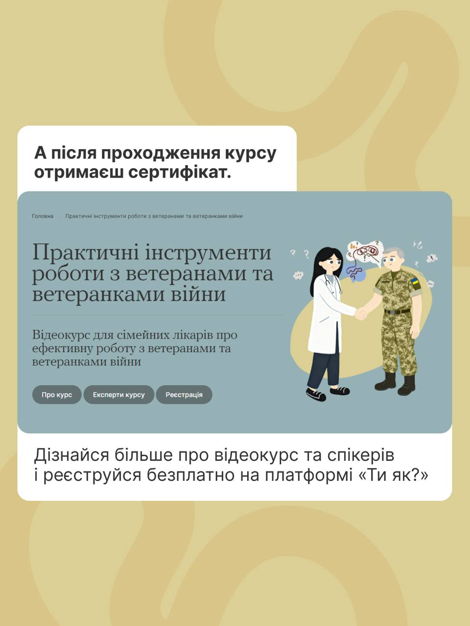 Якщо ти медпрацівник та у своїй роботі хочеш впевненіше спілкуватися з ветеранами і ветеранками — долучайся.