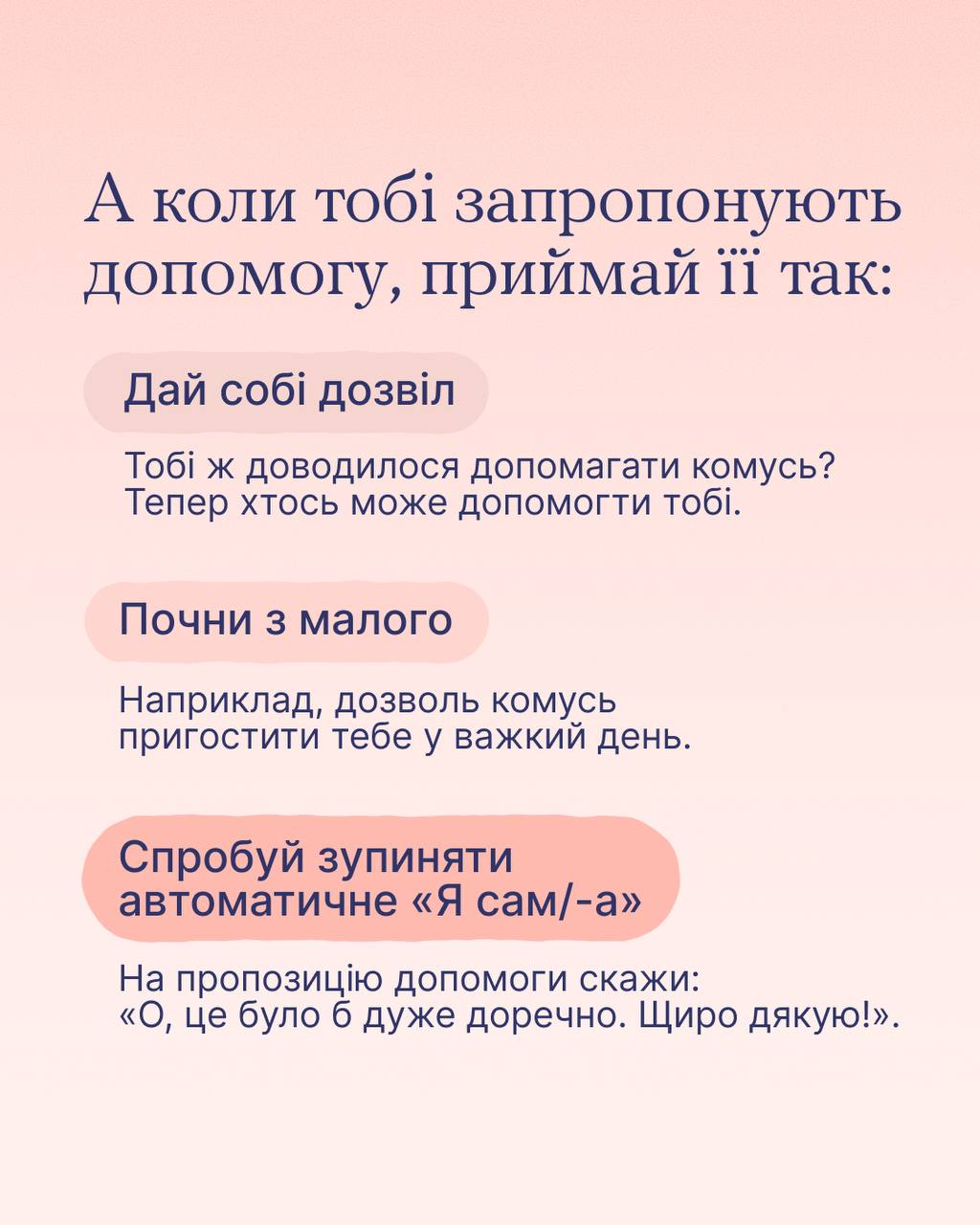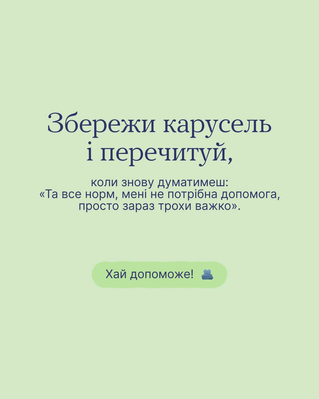Якщо тобі не так складно допомогти, як попросити допомогу в інших і прийняти її — тобі в карусель. Там кілька простих способів навчитися брати підтримку. Вони особливо корисні для тих, що тримаються, не хочуть вантажити близьких та мовчать про свої потреби.