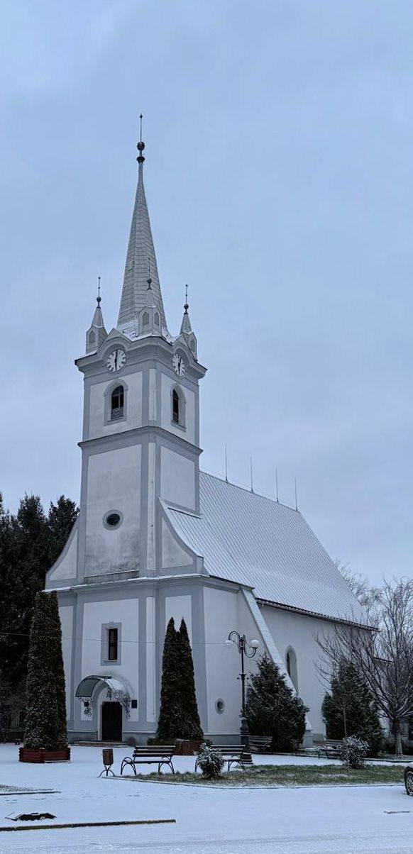 Реформатська церква в центрі Тячева належить до найстаріших сакральних споруд міста. Її історія сягає пізнього середньовіччя – раннього нового часу, коли Тячів був важливим торговельним і ремісничим осередком Мараморошу. Храм неодноразово перебудовувався, але зберіг характерну стриманість реформатської архітектури та домінуючу вежу, що формує історичний силует центру міста. У новорічну ніч Реформатська церква постає як символ тяглості традицій і духовної витримки громади, яка століттями жила працею, вірою та взаємною повагою.