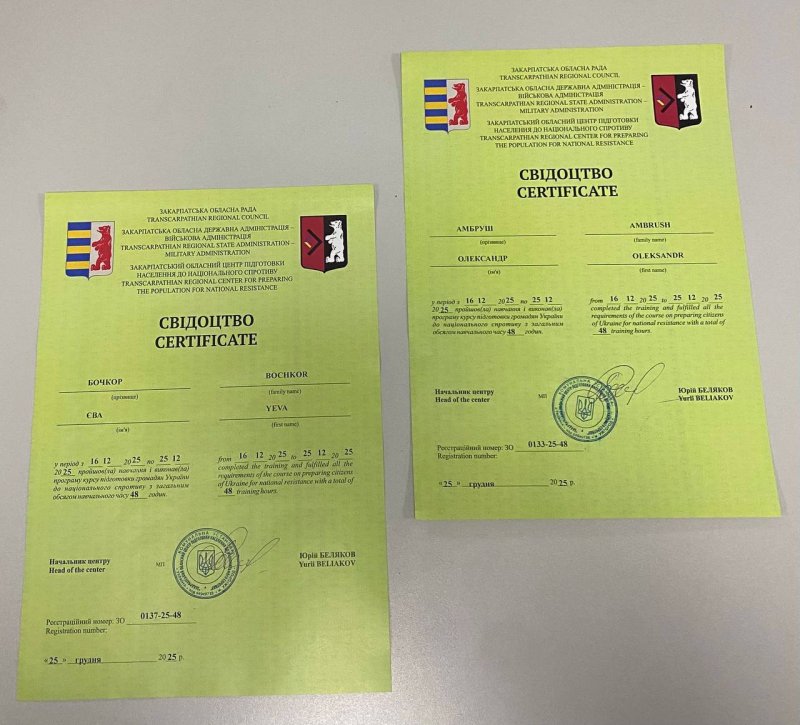 За підсумками проходження курсу перший заступник голови Тячівської РВА Вадим Носа вручив слухачам свідоцтва про проходження навчання. Під час вручення він наголосив на важливості системної підготовки населення до національного спротиву, особливо працівників підприємств і установ, від яких залежить безперебійне функціонування району в умовах воєнного стану.