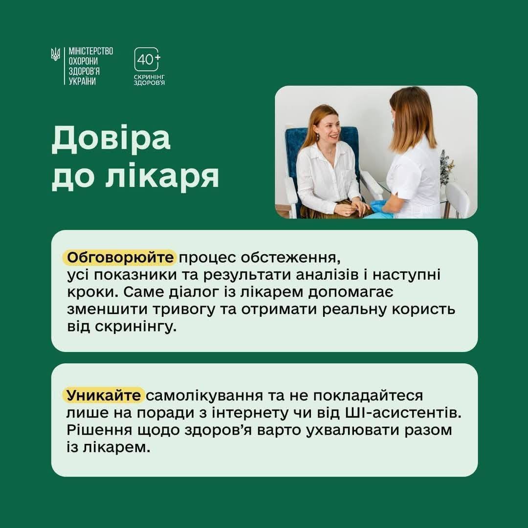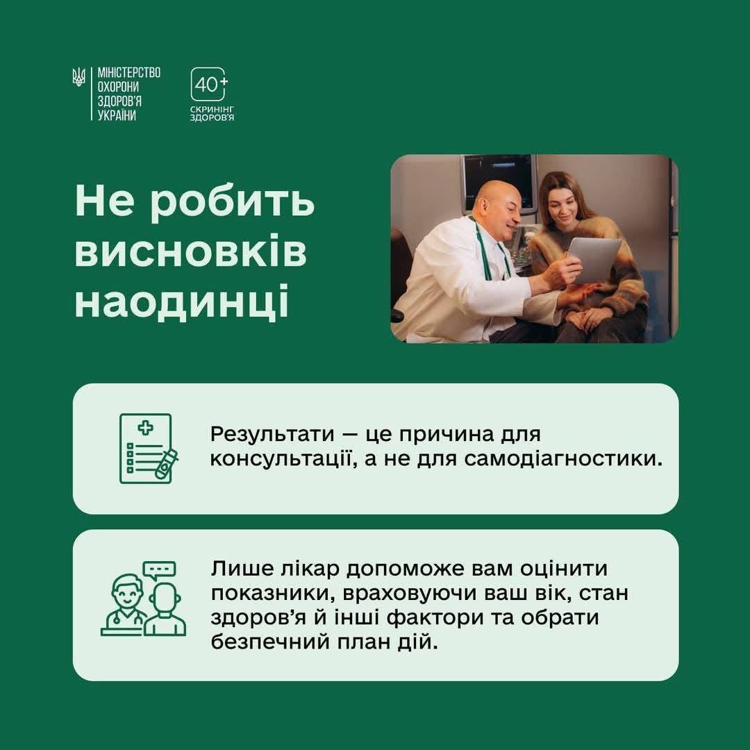 1 січня 2026 року в Україні стартувала програма «Скринінг здоров’я 40+», яка дає можливість українцям та українкам від 40 років перевірити своє здоров’я, оцінити індивідуальні ризики та разом із лікарем визначити, на що варто звернути увагу.