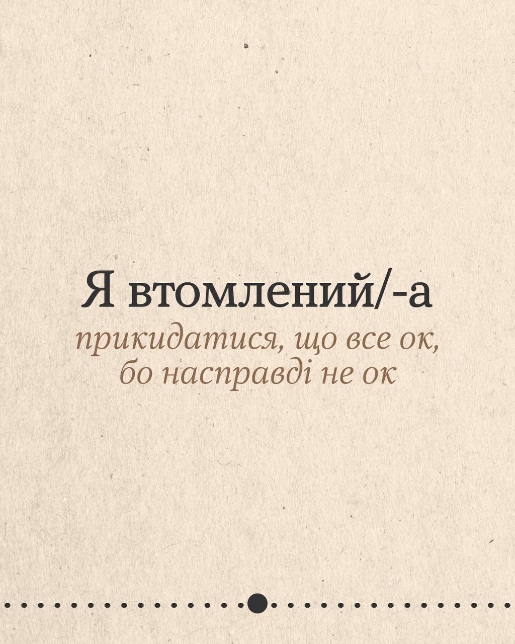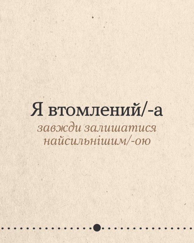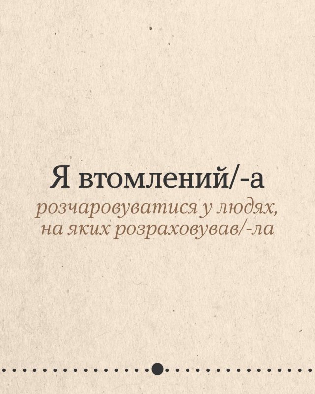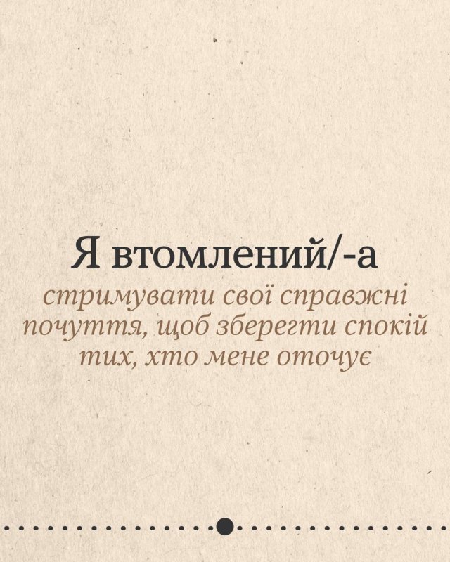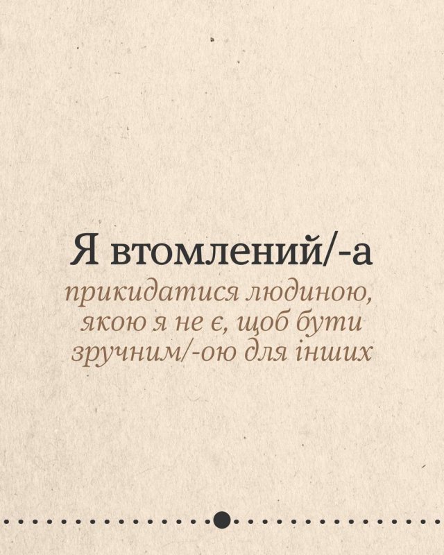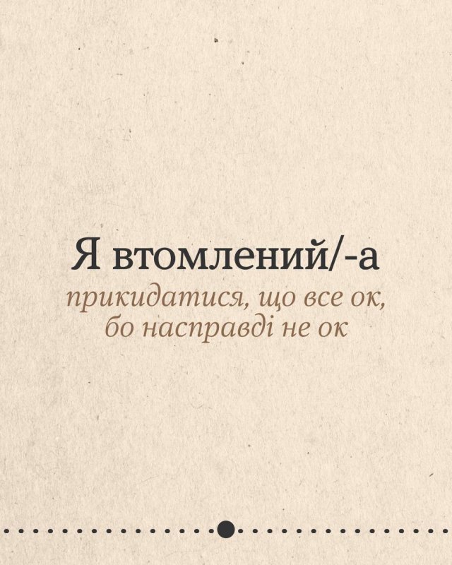 Деяка втома не лікується вихідними чи відпусткою. А все тому, що ти потребуєш не просто відпочинку, а змін. Гортай карусель, щоб подумати, що насправді втомлює. Може, це робота без вихідних, а може, виснажливі стосунки чи високі очікування від себе? Обіцяй з’ясувати.