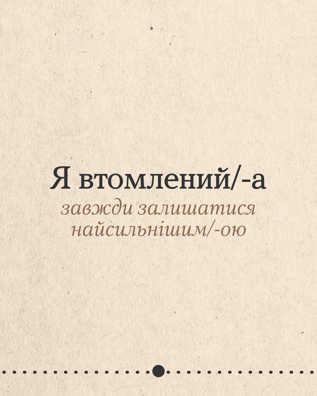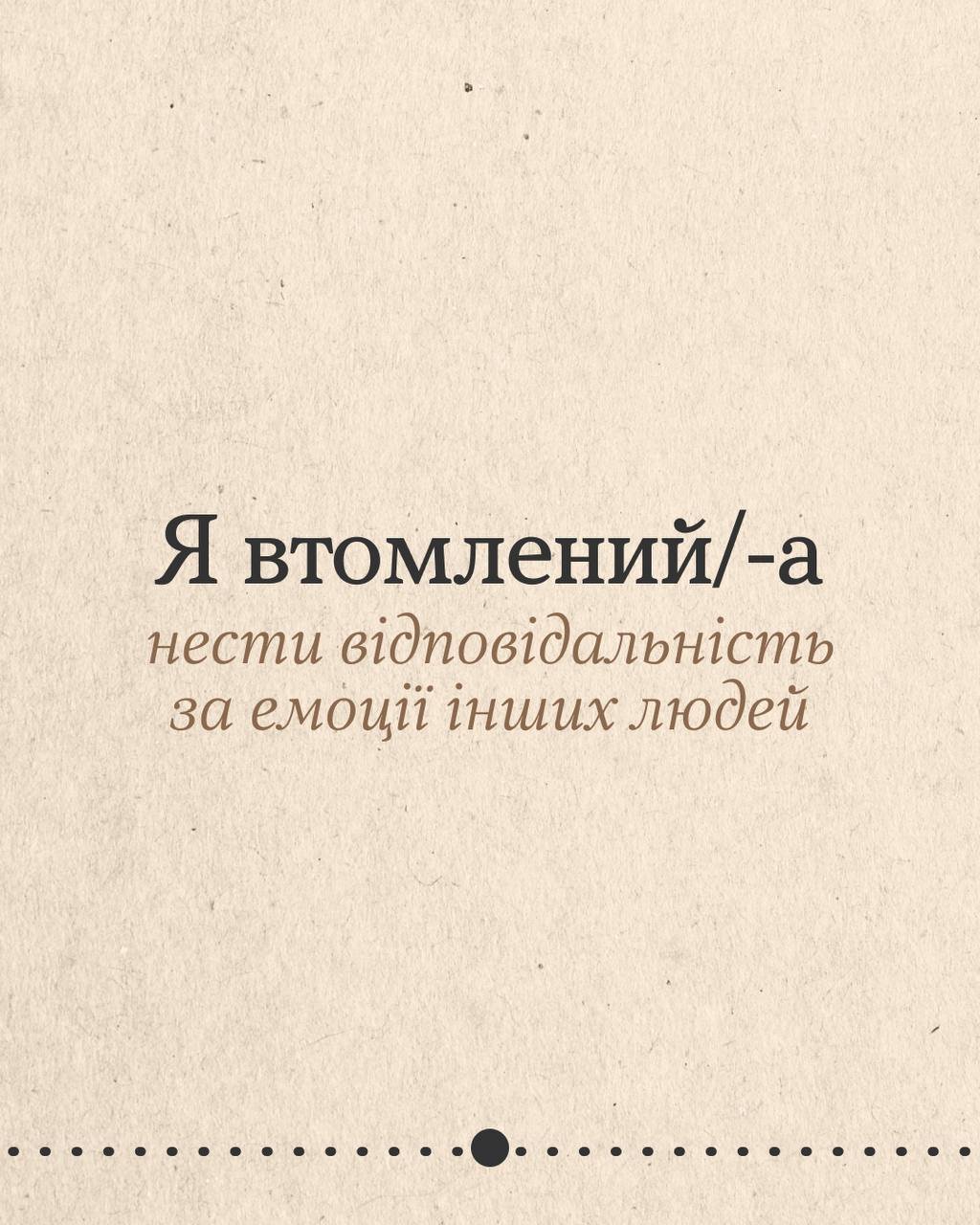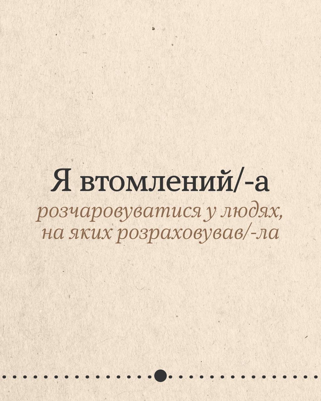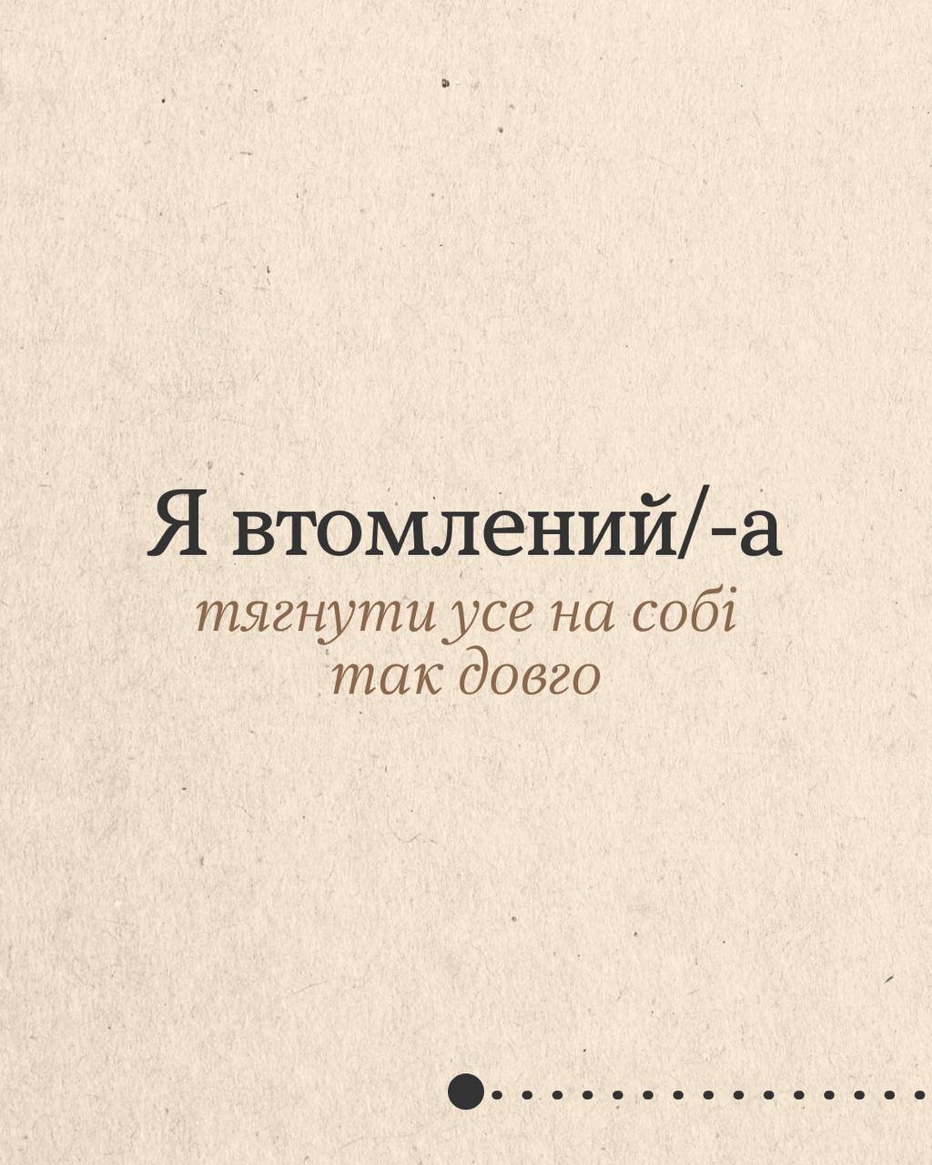 Деяка втома не лікується вихідними чи відпусткою. А все тому, що ти потребуєш не просто відпочинку, а змін. Гортай карусель, щоб подумати, що насправді втомлює. Може, це робота без вихідних, а може, виснажливі стосунки чи високі очікування від себе? Обіцяй з’ясувати.
