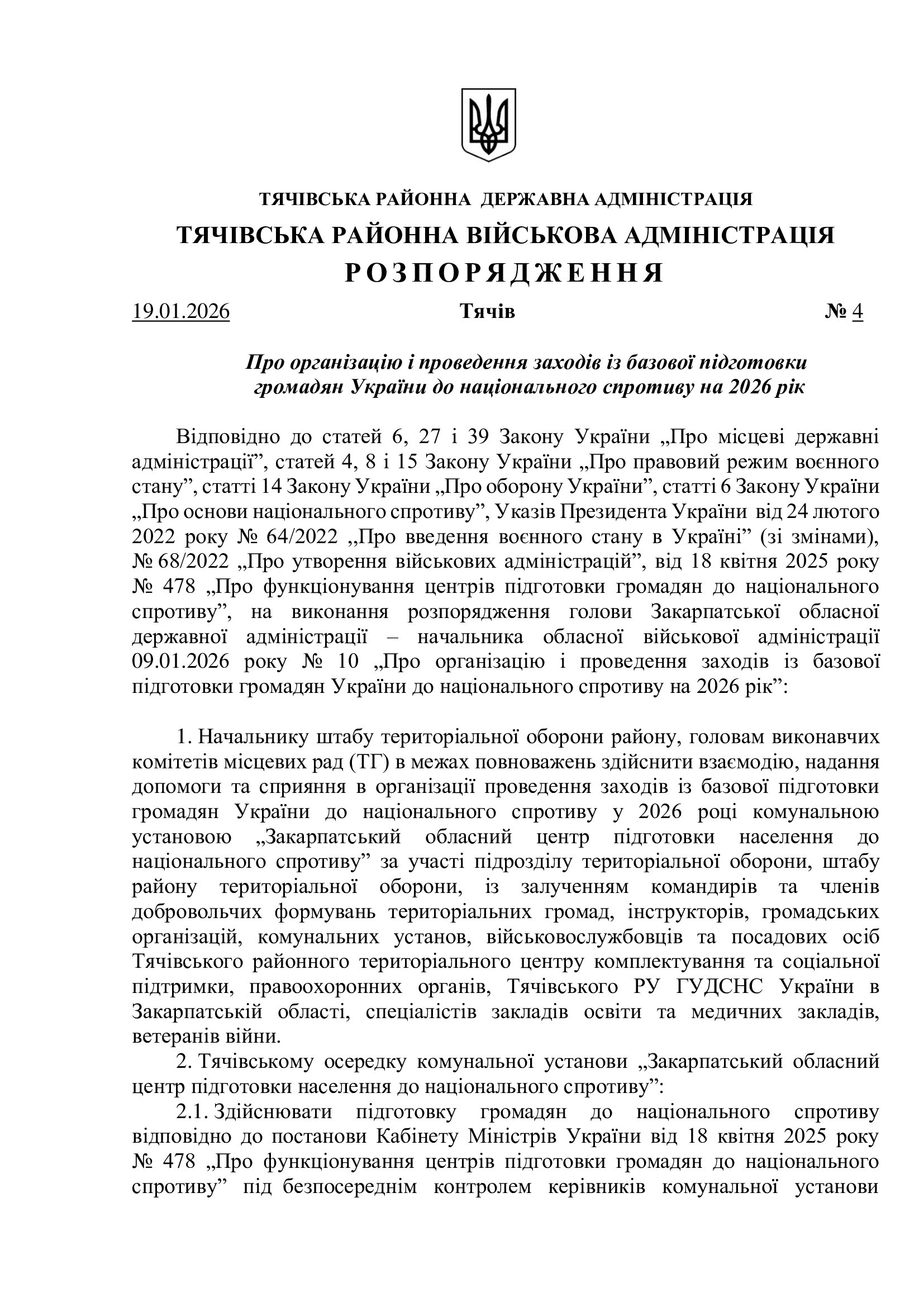Про організацію і проведення заходів із базової підготовки громадян України до національного спротиву на 2026 рік