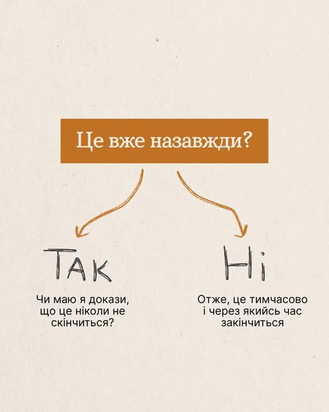 Адже інколи не така страшна ситуація, як її може малювати наш мозок. А якщо додати до автоматичних думок ще й неперевірені новини, чутки, нагнітання, високий рівень тривоги тобі гарантовано.