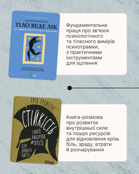 Добірку створено у межах Всеукраїнської програми ментального здоров’я «Ти як?» — ініціативи першої леді Олени Зеленської, разом із Факультетом Психології КНУ імені Тараса Шевченка.