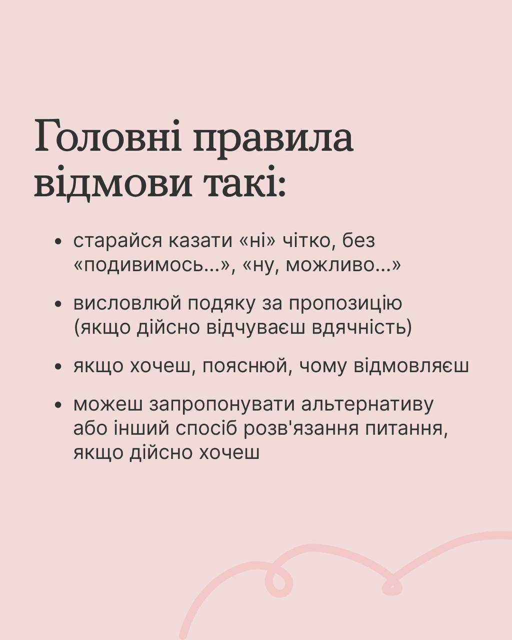 А ти вмієш відмовляти? Знаємо, що це буває складно. Тому зібрали цілу карусель рекомендацій, як здобути таку корисну навичку. Користуйся.