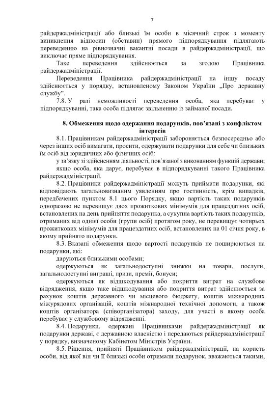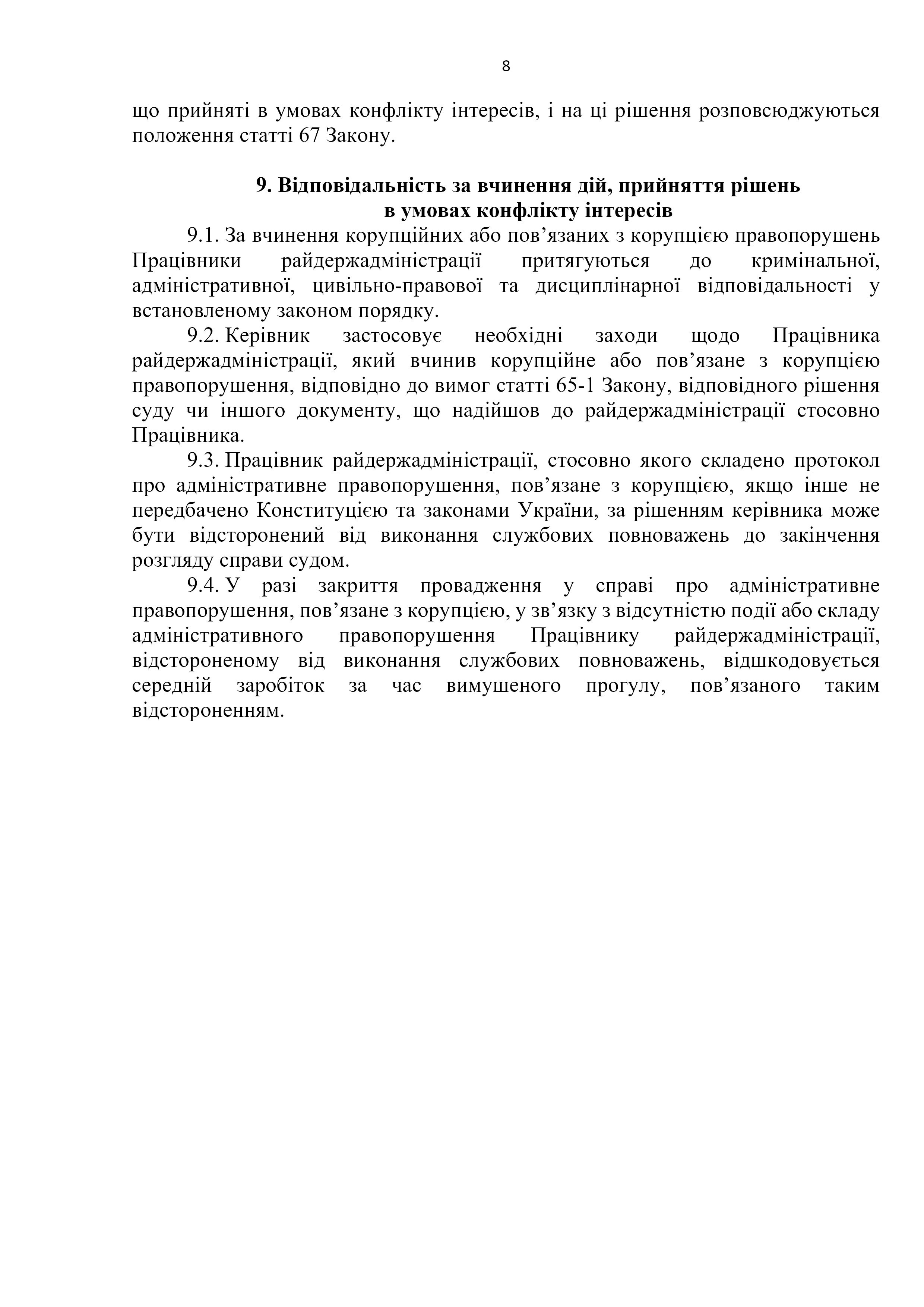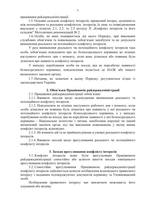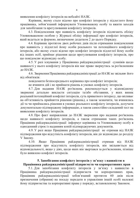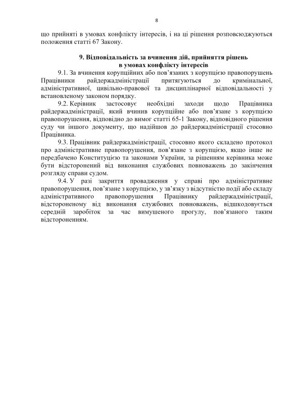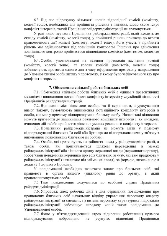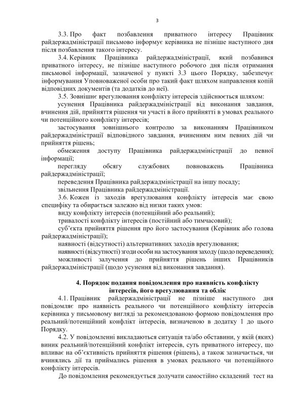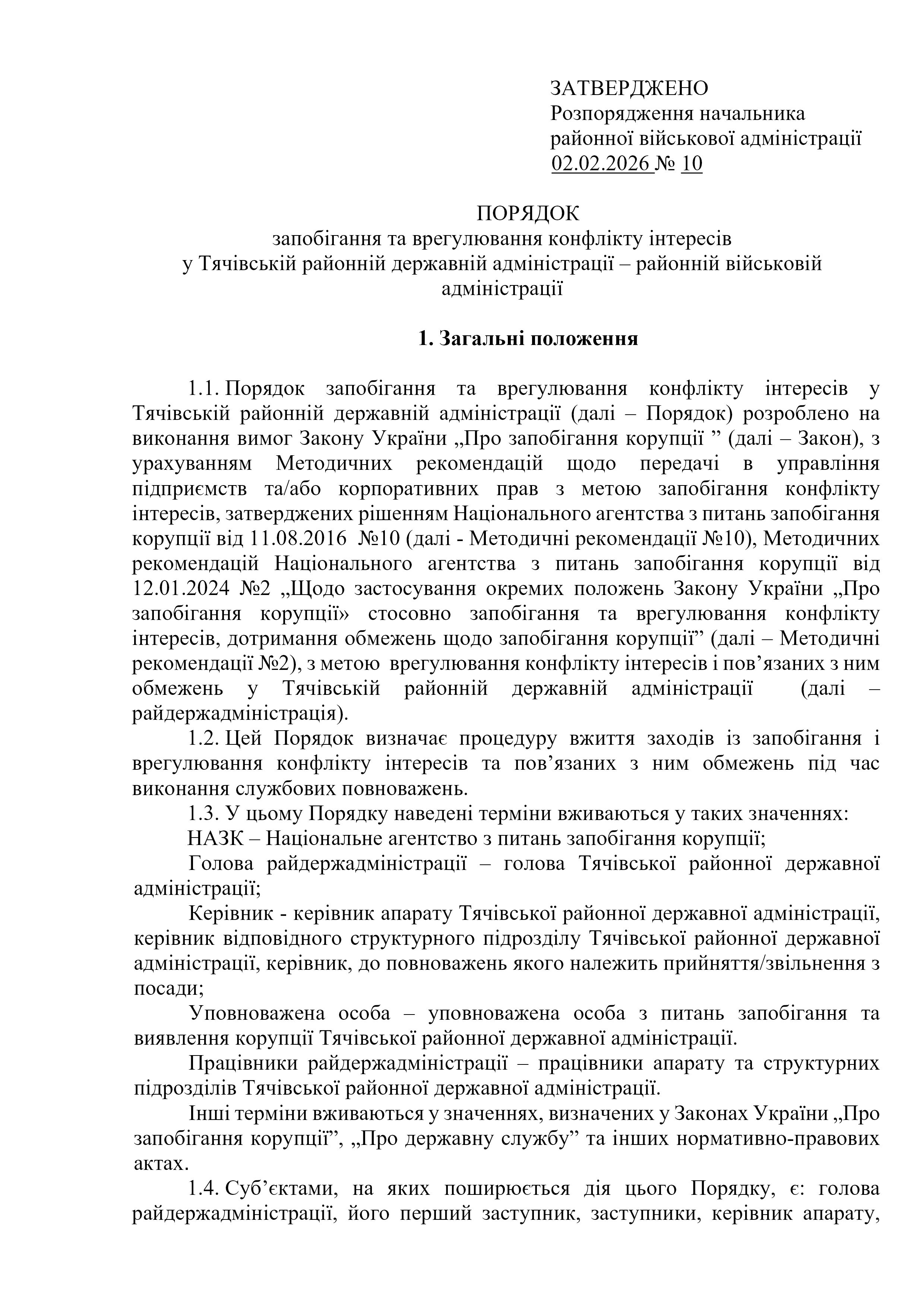 Про Порядкок запобігання та врегулювання конфлікту інтересів у Тячівській районній державній адміністрації - районній військовій адміністрації