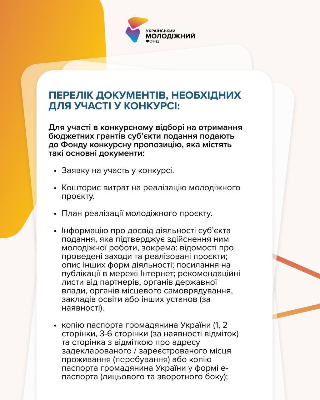 Фінансову підтримку у розмірі від 50 000 до 200 000 грн молоді люди віком від 14 до 35 років можуть залучити на: